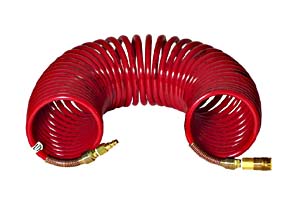 Coiled Hose^A 50 foot coiled hose with an Industrial Interchange QD coupler and nipple.