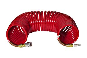 Coiled Hose^ A 25 foot coiled hose with a Schrader QD coupler and nipple.