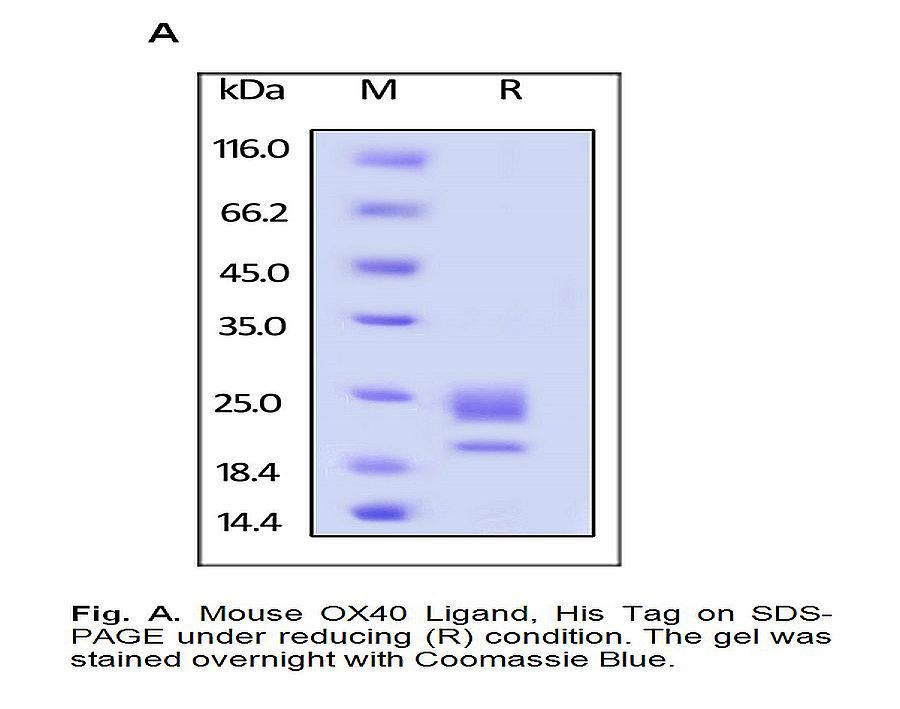 CellExp* OX40 Ligand / TNFSF4 10ug^ CellExp* OX40 Ligand / TNFSF4, Source HEK 293 cells, Species: Human, Purity by SDS-PAGE > 90%, Endotoxin Level < 1.0 EU per/ug, Lyophilized from 0.22 um filtered solution in PBS, pH7.4. Synonyms: OX40L, TNFSF4, CD252, Glycoprotein Gp34, TXGP1, Size: 10ug