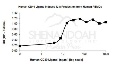 Recombinant Human Cd40-Lig & (Cd40-L) Contains 149 Aas^ Recombinant Human Cd40-Lig & (Cd40-L) Contains 149 Aas, Mw: 16. 3 Kda. Activity: Dose Production Of Il-8 By Human Pbmcs & Is Typically 5-10 Ng/Ml Or Proliferation Of Human Pbmcs & Is Typically 1Ug/Ml. Source: E. Coli. Synonym: Tnfsf5, 10Ug