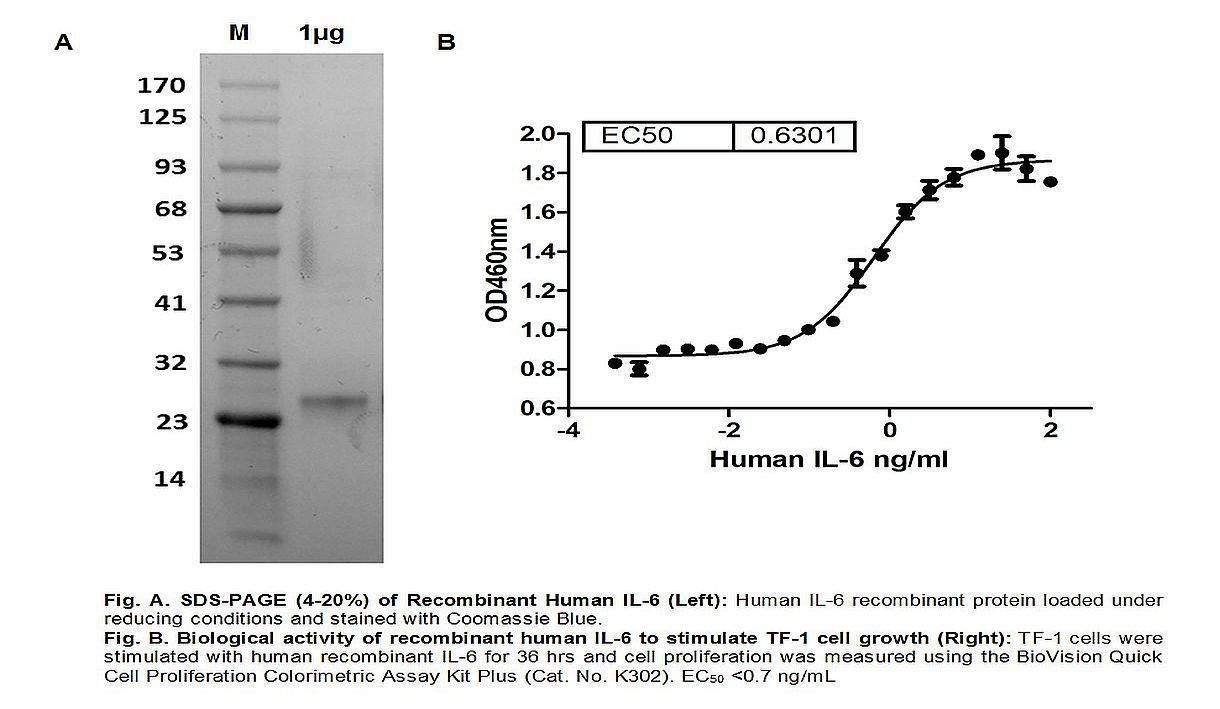 CellExp* IL-6, Human Recombinant^ CellExp* IL-6, Human Recombinant, Purity by SDS-PAGE > 90%, Endotoxin Level < 1.0 EU per 1 ug of protein, Biological Activity EC50 <0.7 ng/mL, Synonyms: IFN-b2, B cell differentiation factor, BCDF, BSF-2, HPGF, HSF, MGI-2, B-cell stimulatory factor 2, Size: 250ug