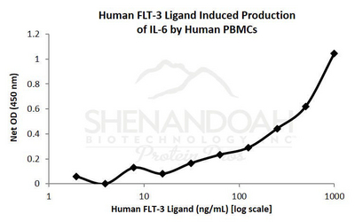 Recombinant Human Flt3-Ligand (Flt3 L) Contains 155 Aas^ Recombinant Human Flt3-Ligand (Flt3 L) Contains 155 Aas, Activity: Dose-Dependent Production Of Il-6 By Human Pbmcs And Is Typically 100-200 Ng/Ml Or The Proliferation Of Oci-Aml5 Cells & Is Typically 1-2 Ng/Ml. Source: E. Coli. 100Ug