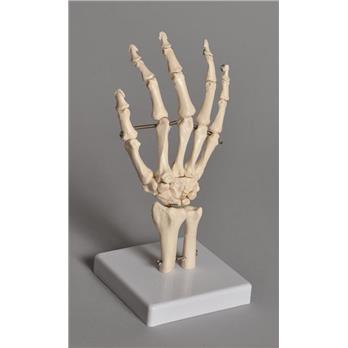 This high quality model is great for anatomical study. The hand is mounted on a sturdy plastic base, and the fingers are flexible enough to demonstrate movement. Model is 8.5 " tall and 4 " wide.
