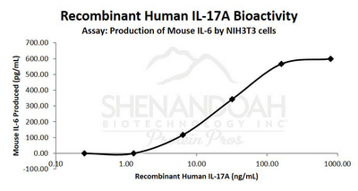 Recombinant Human Interleukin 17A^ Recombinant Human Interleukin 17A IL-17A or CTLA-8 is a disulfide-linked homodimer, contain two 137AA chains, with a MW of 31kda. Activity: dose-dependent production of IL-6 in cultured mouse NIH 3T3 fibroblasts and is typically 1. 5-7 ng/mL. Source: E.coli, 100ug
