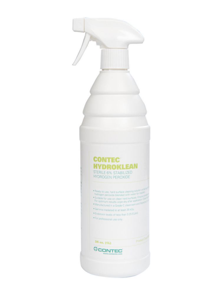HydroKlean Solution 1l^ HydroKlean Solution, Blend of 6% hydrogen peroxide and water, Endotoxin level: Less than 0.25 EU/ml, Filtration: 0.2um, Ready to use, has no Volatile Organic Compounds, Compatibility: ISO Class 7, Application: For use in all areas of the cleanroom, Size: 1l, Trigger spray