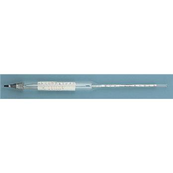 Calibrated at 20°C within a tolerance of ±0.1° and otherwise in accordance with the requirements of the U.S. National Bureau of StandardsInterval 0.1°; approximate total length 340 mm, approximate length of scale 140 mm, with graduations at least 1.4 mm apartRequire a cylinder 38 x 375 mm and about 285 mL of liquid.
