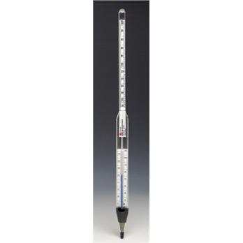 Specifications Specific Gravity and Baume Scales @ 60°FMade from heavy-walled, anneealed tubing for maximum strengthBuilt-in non-mercury thermometerLead-free ballastConforms to ASTM accuracy requirementsEach thermo-hydrometer comes with a Certificate of Conformance traceable to NIST. Bio-degradable, non-mercury performance liquid provides safe and easy cleanup in case of breakage. Scales are bold and easy to read. All instruments measure 15 " in length and come with a built-in thermometer. Hydrometer cylinder of at least 390 mm x 50 mm is required (See Thomas No. 6024Y50).Thomas No.Specific Gravity RangeBaume RangeSpecific Gravity DivisionsBaume DivisionsThermometer Range (°F)6024Y010.700/0.86070/33*0.0020.50 to 1506024Y030.840/1.00037/10*0.0020.50 to 1506024Y051.000/1.2200/260.0020.220 to 1506024Y071.200/1.42024/430.0020.220 to 1506024Y091.400/1.62042/550.0020.220 to 1506024Y111.600/1.82054/650.0020.220 to 1506024Y131.800/2.00064/720.0020.220 to 150*Indicates Baume Light Scale- All other Baume scales are for heavy liquid