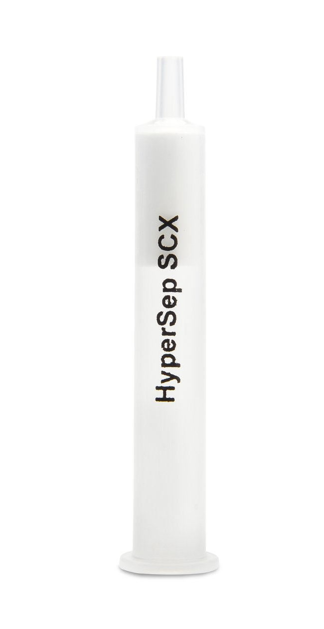 The use of SPE sample preparation can significantly enhance the robustness and reliability of many biological, pharmaceutical, forensic and environmental applications.Thermo Scientific™ HyperSep™ SCX Cartridges feature a strong cation exchange sorbent for extraction of charged basic compounds. Typical applications include extraction of:AntibioticsDrug compoundsOrganic basesAmino acidsCatecholaminesHerbicidesHyperSep SCX Strong Cation Exchanger Cartridges are ideally suited for the extraction of a wide range of charged basic compounds. Modified benzene ring provides potential for nonpolar interactionsLow pKa value HyperSep SPE Cartridges and PlatesThermo Scientific™ HyperSep™ solid phase extraction cartridges offer reproducible, reliable sample preparation in a traditional format. Available in a wide range of chemistries and bed weights, the cartridges are ideal for large samples and conform to industry standard configurations, allowing efficient routine processing by vacuum, by positive pressure or centrifugation.The Thermo Scientific™ HyperSep-96™ system incorporates traditional solid phase extraction sorbents into 96-well plate format providing fast analysis without sacrificing accuracy or reproducibility. The innovative design of HyperSep-96 well plates provides flexibility for both method development and scale adjustment to 96-well without method revalidation. Well plates are customizable, allowing any arrangement of wells with differing sorbent chemistries for simultaneous processing. HyperSep-96 products are either available in packs of 100 individual wells or in pre-assembled plates.