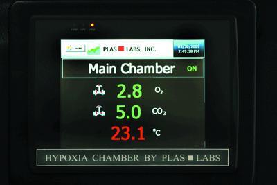 Chamber Glove Box^ Ideal for tissue culture work, including tumor cell and stem cell research. It features a color operated touch screen for automatically controlling oxygen, temperature, and carbon dioxide levels.