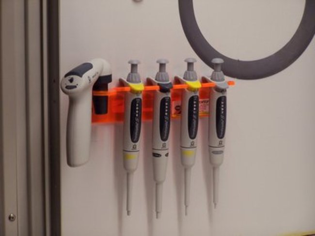 4 Place w/Filler BI's PST-50 and PST-51 are (4) place pipette holders with additional place for a mechanical pipette filler. Racks are made of durable 1/4 in. cast acrylic for years of reliable use, and the fluorescent orange will add color to your lab.