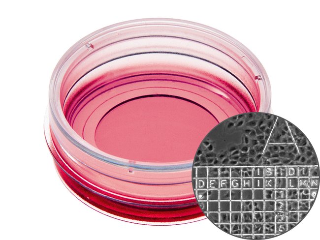 micro;-Dish 35 mm, High, Grid-50, Glass Bottom - #1.5H Glass Bottom Coverslip, Pack of 30
