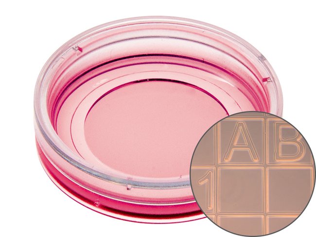 u-Dish 35 mm, low Grid-500, ibidi, ibiTreat, tissue culture treated, sterile, low wall, 35mm, grid repeat distance 500 um, 60/PK