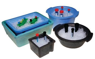 Ice Pan^ Ice Pan, 4L Polystyrene, provide excellet insulating properties to help keep temperature sensitive samples safe. Each ice pan features unique gripping ridges for easy transport as well as pour spouts, blue