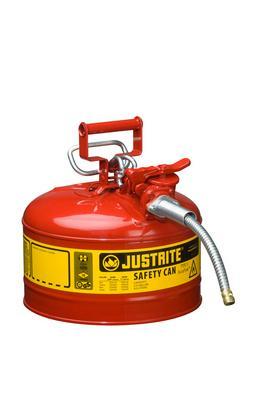 IIAF RED 2.5G/9.5L 5/8 HOSE ^ Superior pour control and smooth, fast liquid flow. 9IN flexible metal hose. Leak proof, w/large ID zone for user labeling.100% leak tested. 10 year warranty. Meets OSHA and NFPA. FM, UL, ULC Listed. CARB Compliant. TUV certified.
