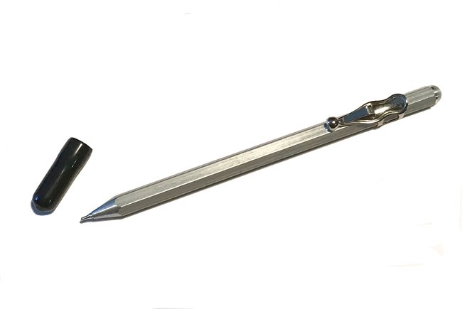 Diamond tip writing instrument provides comfortable grip for etching glass and other surfacesSturdy etching instrument designed to look and feel like a penDiamond tipAluminum shaftClipBarrel's shape: HexagonalCap included