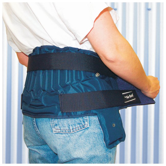 Impacto™ Lumbosacral Air BeltInflatable air chambers provide static stretch to relax muscles in spasmLower portion of contoured bladder system provides support and stability to sacral regionThree hold-down straps provide stability and support over lumbosacral areaNeoprene stretch fabric in the front and side panels allows four-way freedom of movement and helps keep belt in placeLightweight nylon with moisture-absorbing lining and adjustable hook and loop closureOrder InfoBelt can be worn over or under clothing. When ordering belts to be worn over clothing, add 2 in. (5.1cm) to waist size.