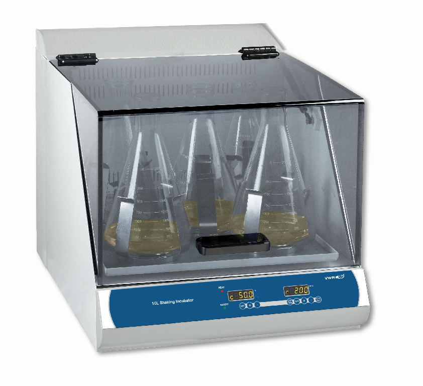 Capacity: 5×2 L or 9×1 L, Temperature Range: Ambient –15…60 °C, High capacity benchtop incubated shaker with heating and cooling., The VWR® incubated shakers are compact orbital shakers with precision temperature control., 04_BodyText: Other models in the series are available offering a variety of temperature range capabilities and chamber sizes., 02_BulletPoint: 230 V model | High capacity, accepts 9×1 L or 5×2 L flasks | Precision temperaure control, 15 below Ambient to 60 °C | Unique platform accepts magnetic clamps for easy attachment of flasks/bottles, 13_Caution: 230 V model. Corresponding model with voltage suitable for use in US (76407-116) is also available, please see separate product page., 08_Certifications: CE marked., 10_Ordering: Supplied without accessory clamps. A wide range of accessories are available to order separately. | Supplied with a standard non-skid, silicone mat that is suitable for low speed shaking of tissue culture flasks, Petri dishes and staining trays. For high speed shaking, an optional universal/magnetic platform is available with clamp accessories for a variety of flasks, tubes and other common vessels., Irregular Voltage: Y, VWR® Incubated and refrigerated shaker, 230 V, Shaking Speed: 30 - 300 rpm, Cat. No.: 76407-118, Electrical: 230 V, 50/60 Hz, 950 W, High capacity benchtop incubated shaker with heating and cooling., The VWR® incubated shakers are compact orbital shakers with precision temperature control., 04_BodyText: Other models in the series are available offering a variety of temperature range capabilities and chamber sizes., 02_BulletPoint: 230 V model | High capacity, accepts 9×1 L or 5×2 L flasks | Precision temperaure control, 15 below Ambient to 60 °C | Unique platform accepts magnetic clamps for easy attachment of flasks/bottles, 13_Caution: 230 V model. Corresponding model with voltage suitable for use in US (76407-116) is also available, please see separate product page., 08_Certifications: CE marked., 10_Ordering: Supplied without accessory clamps. A wide range of accessories are available to order separately. | Supplied with a standard non-skid, silicone mat that is suitable for low speed shaking of tissue culture flasks, Petri dishes and staining trays. For high speed shaking, an optional universal/magnetic platform is available with clamp accessories for a variety of flasks, tubes and other common vessels.