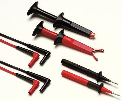 SureGrip* Industrial Test Lead Set, Model TL220^ Starter kit for industrial applications. Includes two alligator clips (26984-306), two industrial test probes (26984-413), and two silicone test leads (26984-403). 1000V CAT III, 600V CAT IV, 10A.