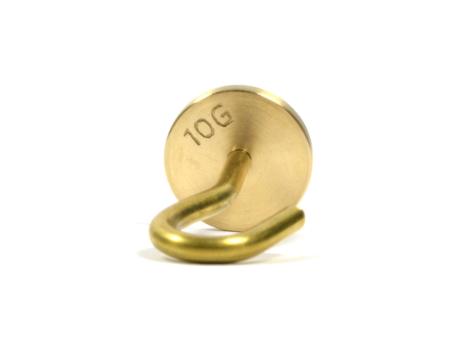 Individual Hooked Weights - Brass - 10g. Weight measures 18.8mm in diameter