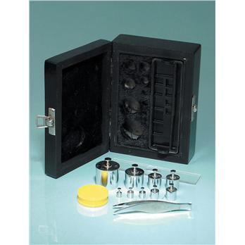 Weights are made of brass, with nickel plated surfaces. All weights are carefully tested and calibrated. Analytical Weight Box contains a total of 9 weights from 1 to 100 grams, in polished wooden box, with fractional weights, rider and forceps.