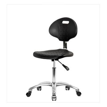 Our ergonomic Clean Room Basic industrial polyurethane chairs adjust to fit most body types and workstations. Optional 2-way adjustable arm rests support a variety of arm placements for proper ergonomics. Our polyurethane chairs are easily cleaned, making them ideal for almost any environment. Choose from chrome hooded rolling, non-marring casters (suitable for both hard and carpeted floors) or black, non-marring bell glides (suitable for both hard and carpeted floors) on a polished cast aluminum base. Optional 20-inch diameter chrome foot rings are available. Each ergonomic polyurethane chair is backed by our 15-year warranty, lifetime on the pneumatic lift.Visit our seating website www.thomaschair.com to view all available options, specs and for easy ordering!