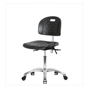 Our ergonomic clean room industrial polyurethane chairs adjust to fit most body types and workstations. Optional 6-way adjustable arm rests support a variety of arm placements for proper ergonomics. Our polyurethane chairs are easily cleaned, making them ideal for almost any environment. Choose from chrome hooded rolling, non-marring casters (suitable for both hard and carpeted floors) or black, non-marring bell glides (suitable for both hard and carpeted floors) on a polished cast aluminum base. Optional seat tilt provides 8° forward and 3° backward locking tilt for ergonomic posture support. Twenty-inch diameter chrome foot rings are available. Each ergonomic polyurethane chair is backed by our 15-year warranty, lifetime on the pneumatic lift.Visit our seating website www.thomaschair.com to view all available options, specs and for easy ordering!