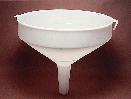 Industrial Funnel, Polyethylene^ Heavy-duty, extra large industrial funnel is constructed of linear polyethylene. Top O.D. is approximately 343mm. Stem length is approximately 127mm, tapering to an approximate 32mm I.D. opening at the bottom of the stem.