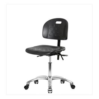 Industrial Polyurethane Desk Height Chair with Chrome Base, No Tilt, No Arms, Chrome Casters, Each