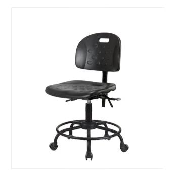 Industrial Polyurethane Desk Height Chair with Round Tube Base, with Tilt, No Arms, Casters, Each