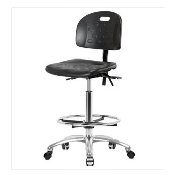 Industrial Polyurethane High Bench Height Chair with Chrome Base, with Tilt, Adjustable Arms, Chrome Foot Ring, Glides, Each