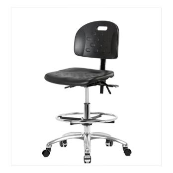 Industrial Polyurethane Medium Bench Height Chair with Chrome Base, with Tilt, No Arms, No Foot Ring, Chrome Casters, Each