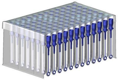 Astral* Inoculation Loop^ 10uL. Color: blue. Certified to be free of RNase, DNase, DNA, pyrogens and PCR inhibitors. 96 loops/rack. Includes handle.