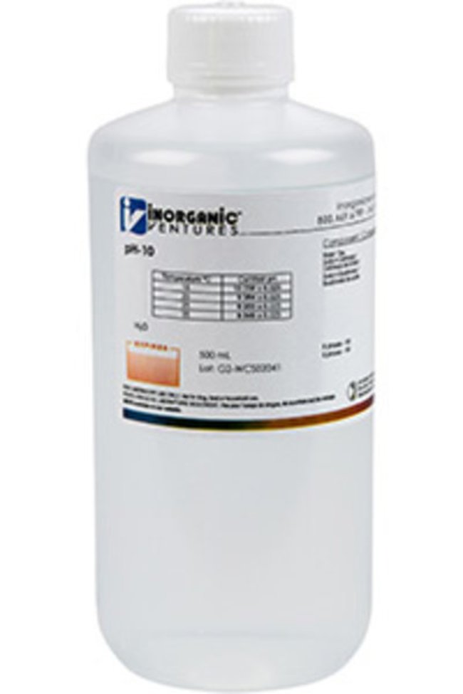 Inorganic Ventures' pH 10 Standard is a 500mL certified reference material set in a water matrix for stability. This standard is Traceable to NIST and manufactured in accordance with our stringent Quality Assurance guidelines. One year Expiration Date.