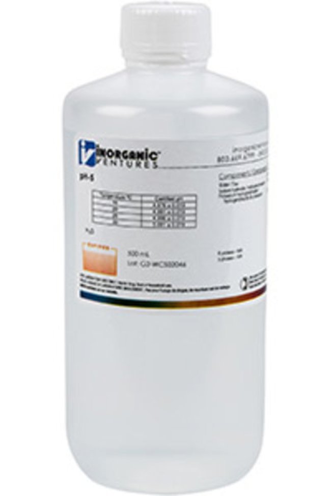 Inorganic Ventures' pH 5 Standard is a 500mL certified reference material set in a water matrix for stability. This standard is Traceable to NIST and manufactured in accordance with our stringent Quality Assurance guidelines. One year Expiration Date.