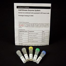 Insr Kinase Enzyme System Sf9 Insect Cell 1 mg^ Insr Kinase Enzyme Easily Screen and Profile INSR Kinase Inhibitors, Includes kinase, substrate and reaction buffer, Use with ADP-Glo* Assay for bioluminescent detection of kinase activity, Size: 1mg