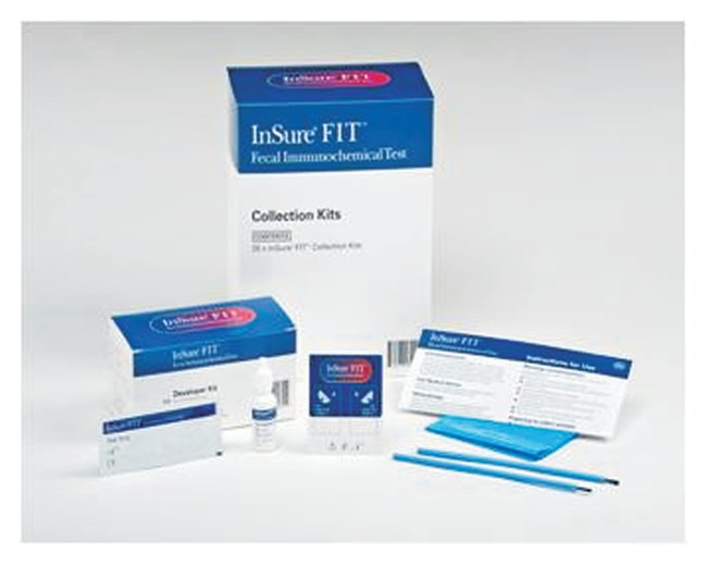 Clinical studies have shown that the InSure FIT test is highly sensitive for detecting blood in and around the stool, a key indicator of abnormalities in the colon and rectum that doctors use to help screen for colorectal cancer.InSure FIT Test KitEasy to Use - patients only need to gently brush the surface of the stool in water for about 5 seconds with the convenient, long-handled blue brushConvenient - samples are collected in the privacy of patient's home, then submitted to the doctor's office or lab for analysisSpecific - does not react with non-human vitamins, drugs or peroxidase from food sources, as Insure FIT is specific for the globin portion of human hemoglobinCPT Code 82274 and Medicare Code G0328QWNo fecal handling – Blue Brush methodNo dietary or medicinal restrictions87% sensitivity for colorectal cancer1, 2Study demonstrated increased patient compliance1 Room temperature storage Two samples on one test cardInternal controls CLIA waived