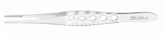 Spring tension for comfortable gripTungsten carbide-tipped Cat. No. 12-460-540 has precision-milled serrations and gold-finished handleFenestrated handle of Cat. No. 12-460-546 is designed to be lightweight for less hand fatigue