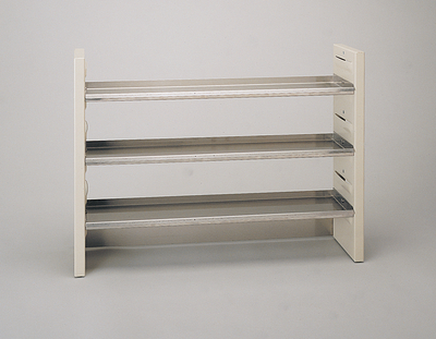 Interior Shelf For Glove Boxes^ 30" Watts X 6" D. Stainless Steel. Adjustable Height Shelves For Glove Boxes Provide Shelf Space Across Back Interior Wall Of Glove Boxes. Three Shelves Are Attached To Upright Supports. Glove Box Accessory.