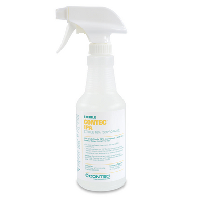 Sterile 70% IPA/30% DI^ Sterile. 16oz bottle-trigger sprayer. 70% USP-grade Isopropanol (IPA)/30% USP-purified water. Filtered to 0.2u and induction sealed. Gamma-irradiated, lot coded and validated per AAMI11137:2006. Wipedown of all surfaces. Use on gloved hands with sterile wipers. 12 per case