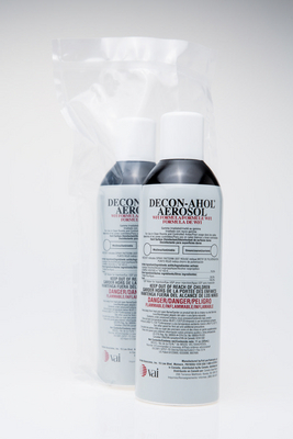 DECON-AHOL* WFI 70% Sterile Isopropyl Alcohol Solution^ 70% isopropyl alcohol/30% USP Water for Injection. Prefiltered to 0.22u, gamma irradiated, and packed in double bag. Lot-specific Certificates of Irradiation and Analysis, LAL Testing Analysis, and Sterility Report. 325mL aerosol mist spray.