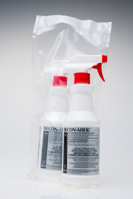 DECON-AHOL* WFI 70% Sterile Isopropyl Alcohol Solution^ 70% isopropyl alcohol and 30% USP Water for Injection. Prefiltered to 0.22u, gamma irradiated, and packed in double bag. Lot-specific Certificates of Irradiation and Analysis, LAL Testing Analysis, and Sterility Report. 473mL trigger spray.