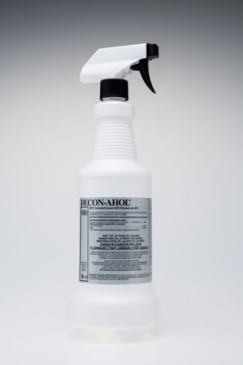 DECON-AHOL* 70% Isopropyl Alcohol Solution^ For decontamination of several items and surfaces. Nonsterile solution with 70% isopropyl alcohol and 30% USP purified water. Size: 946mL trigger spray.