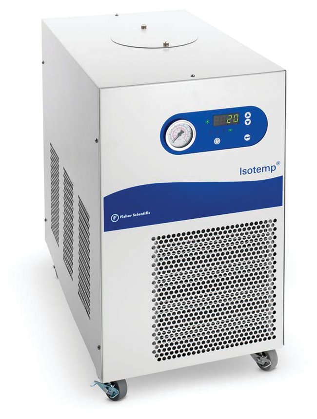 The Isotemp Recirculating Chiller platform offers a compact line of refrigerated recirculating chillers with cooling capacities of 1000w. Ideal for laboratory applications that require higher cooling and pumping capacities.Six models to choose fromCooling capacity: 1000WFull range of heating and cooling from -10°C to 30°CIntuitive digital controller for ease of useCustomer controlled high and low temperature alarm limitsSmall footprint and quiet operationStability ±0.1°C Three pump options for a variety of application requirementsVoltage: 115V 60HzTemperature Range:Setpoint Temperature Range: -10°C to 30°C (14° to 86°F)Ambient Temperature Range: 10° to 35°C (50° to 95°F)This product(s) resides on a Fisher Scientific GSA or VA contract. If you are viewing this page as a nonregistered user, the price(s) displayed is List Price. To view your GSA or VA contract pricing, log in using your account number, or become a registered user by contacting one of our Customer Service teams. You can also view your contract price by searching for this item(s) on GSA Advantage. To place an order, contact Fisher Scientific Customer Service.