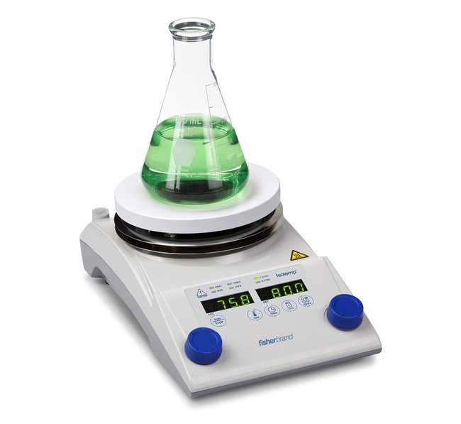 Increase your confidence in safety and accuracy with the sleek, low-profile RT Digital Hotplate, which offers precise digital control with 0.1°C resolution and maximum temperature of 350°C. Experience fast heat-up time and an excellent heat transfer rate thanks to the tightly integrated structure of the heater and a ceramic-coated alloy top plate—provides temperature uniformity and corrosion resistance while allowing for optimal monitoring of color changes in samples or media during operation.Precise control for optimal accuracyMicroprocessor PID controlDigital LED (0.1°C resolution) displayView current and set temperature simultaneouslyTemperature Range: Max. 350°C / 662°FHeating rate can be set from 0 to 100% at 1% intervalConvenient controls offer flexibilityChoose to view temperature in either Celsius (°C) or Fahrenheit (°F)Set timer to start immediately, count down or start when top plate reaches desired set pointLock keypad for added security Two threaded holes for Support Rods hold various kinds of devices such as temperature sensors, thermometers, laboratory glassware and moreSafety features provide ease of mindHot top warning indicator remains illuminated when shut off and still plugged in until top plate reaches ambientAutomatic over-temperature shut offDetachable power cordOptional transparent shield protects user from splashesConstruction/CapacityTop Plate Dimensions: 140 mm / 5.5in diameterTop Plate Material: ceramic coated aluminumDisplay: LED digital (0.1C resolution)Maximum Load: 25kg / 55.1lbsOptional accessoriesHeating bath (Cat. No. 11-676-269)Transparent safety shield (Cat. No. 11-676-270)Support Rod (Cat. No. 11-676-271)C-5, Clamp Holder (Cat. No. 11-676-276)3 Prong Clamp (Cat. No. 11-676-277CertificationsCE, cCSAusWarranty and ServicesTwo year