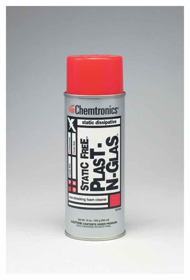 Nonstreaking static dissipative cleaner for transparent and optical surfaces, such as oscilloscopes, laboratory and engineering equipment, and control panels. Controls static, cleans, and polishes in one application. Foaming spray does not run or drip. Prevents attraction of dust and grit. Effectively removes handling oils, finger soils and nicotine stains.Compatible with plastics, glass, and stainless steel. Test on anti-glare coatings. Not for use on mesh screens. Nonflammable. CFC/HCFC free.