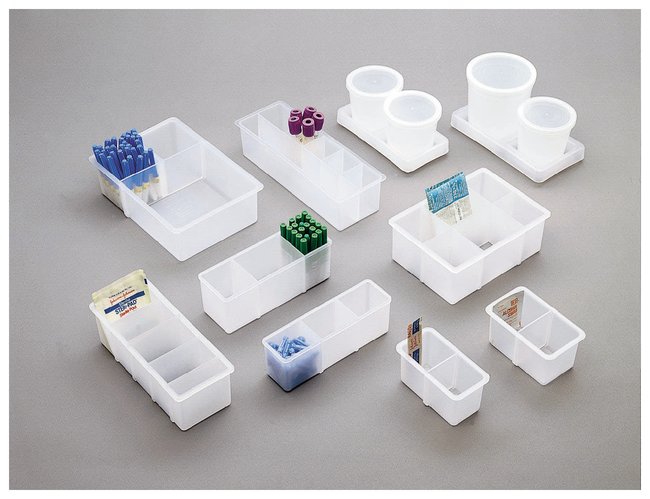 Made of translucent, autoclavable polypropyleneWith two removable dividers to create one, two, or three compartmentsFor small items such as band-aids, slides, small packets, etc.L x W x H: 6.625 × 1.75 ×2.19 in. (16.8 × 4.4 × 5.6cm)Order InfoLid not included.