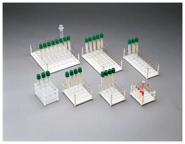 Made of clear PETG plastic with a strong white acrylic base22-038-405Made of translucent, autoclavable polypropylene Nine wells in 3 × 3 rows for holding tubes up to 16mm With two wells in one row for holding tubes or disposable syringes up to 20mmL x W x H: 3.75 × 2.75 × 2.19 in. (9.5 × 7 × 5.6cm)