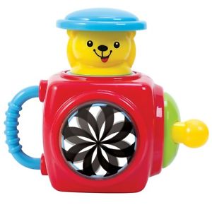 Here's a cute twist on a classic toy! Tots turn the handle round and round as the music plays…and get a fun surprise when an adorable bear pops up! Sized just right for little hands, the durable plastic box is approximately 4" high—and easy for little ones to wind!