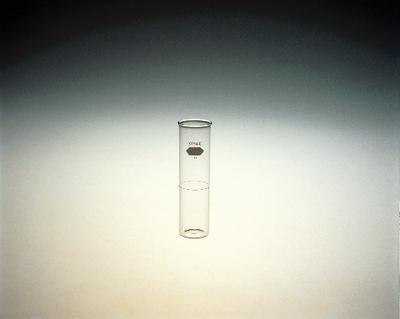 KIMAX* brand Cold Test Jar, Cloud and Pour Points^ Flat bottom jar with marking spot. Open end is reinforced with thick bead. Top OD: 35mm. Height: 125mm. Graduation ring is 54mm from inside bottom. ASTM D97 and D2500. Comes in pack of 12 or case of 36.