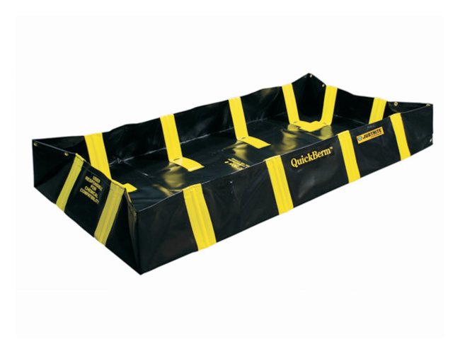 QuickBerm secondary containment helps to comply with EPA regulations and provides dependable spill control for leak-prone containers and equipment.Single-piece construction, quick and easy setup, no assembly requiredQuick response under emergency spill conditionsDurable modified PVC coated fabric withstands long-term UV exposure, good for outdoor useInside wall supports allow berm placement virtually flush up against walls or equipmentReinforced CriticalCorner™ design features wraparound diagonal welds for superior strength and fluid-tight reliabilityWithstands broad range of chemicals including petroleums and most acids, and is durable enough for extended wearHighly visible yellow inside supports alert against potential catch hazards inside while keeping exterior free from trip hazards found in other berms with exterior support systemsThis product(s) resides on a Fisher Scientific GSA or VA contract. If you are viewing this page as a nonregistered user, the price(s) displayed is List Price. To view your GSA or VA contract pricing, log in using your account number, or become a registered user by contacting one of our Customer Service teams. You can also view your contract price by searching for this item(s) on GSA Advantage. To place an order, contact Fisher Scientific Customer Service.ComplianceComply with EPA for containment and spill prevention (SPCC)